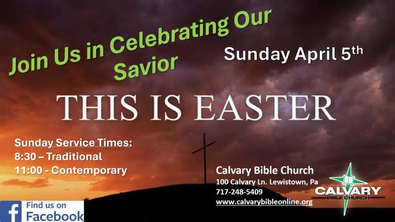 Calvary-Bible-1920x903-e1575811671721 (2)WELCOMEWELCOMEto Calvary Bible Church! WORSHIP WITH US WATCH ONLINE JOIN US IN PERSON September 7 ImageEaster 2026 Image2026 ThemeSlide20 ABOUT OUR CHURCH Our Beliefs Our Staff Our Elders CONTRIBUTE Contributions from our members help us better serve God. If you can, please consider making a secure donation online to help us out. Give with Tithe.ly or SEND US A MESSAGE X/TwitterThis field is for validation purposes and should be left unchanged.Name* First Name Last Name Email* Message*Not a robot?*